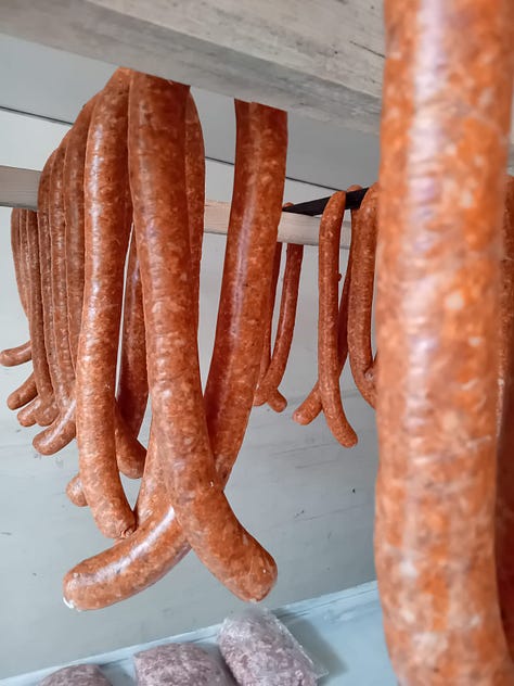Cârnați de casă, slănină, șuncă maturată, cotlet afumat, tobă, caltaboș – gustul autentic al satului românesc.
